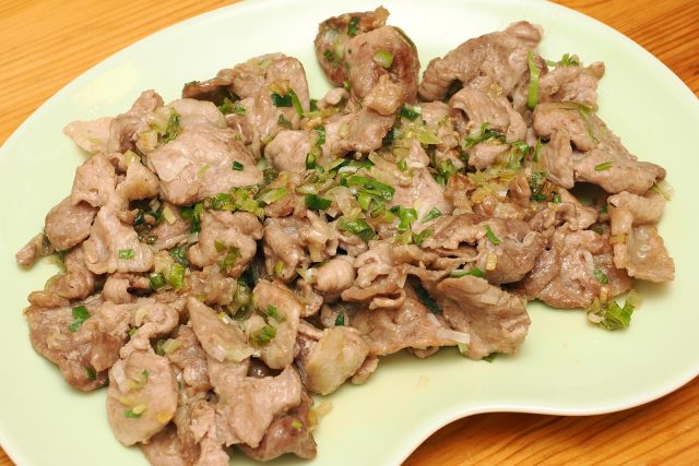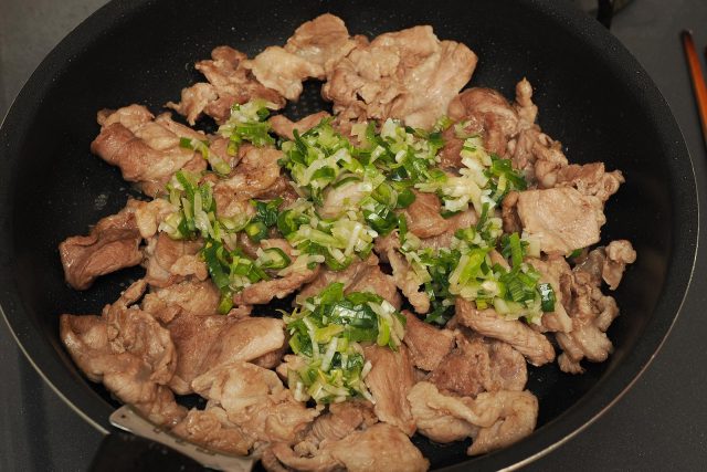 ↑「豚肉の長ネギ旨塩ダレ」の完成です。ご飯がとても進みます。長ネギ美味しい!
