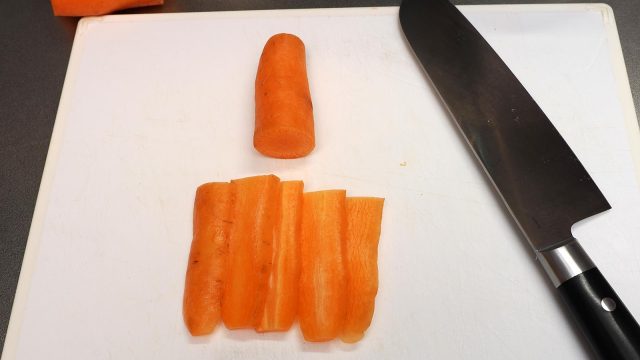 ↑「人参」(2本)と「さといもの親(芋)」(1つ)を使ってカレーを作ります。我が家はカレーの時はさといもを皮付きのまま食べてしまうので、さといもの親をタワシでよく洗いました(産毛?みたいなのが取れるまで)。
