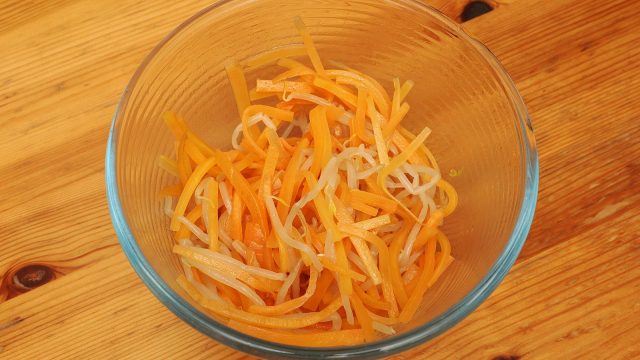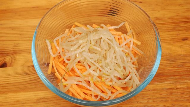 ↑「人参」2本ともやし(100g)を使ってナムルを作ります。