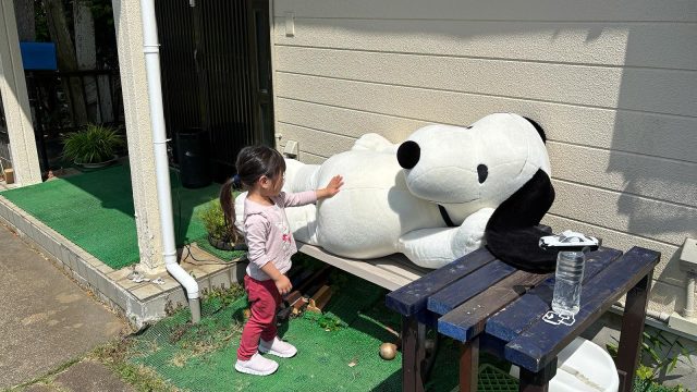 ↑このスヌーピーはデカ過ぎてひなたぼっこするのにも2人必要です。