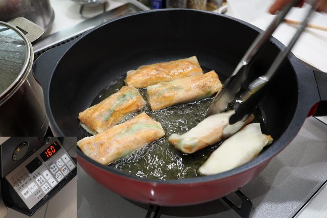 ↑巻き方を工夫すれば、どちらも同じ形の春巻きになりました♪(多少大きさが異なるのは4人でそれぞれ巻いたからです)