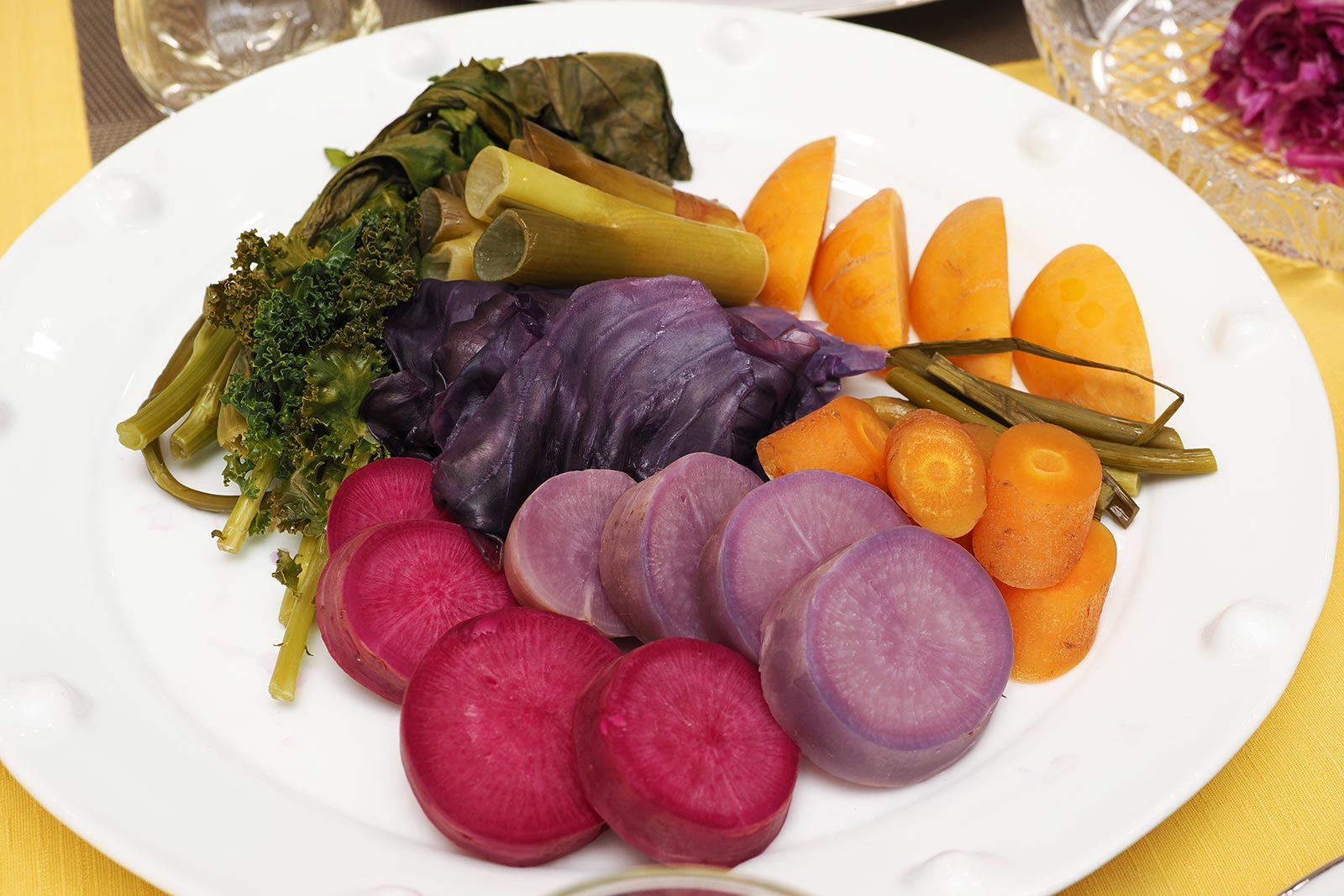 わずか2時間程で全10品目の野菜を、五法(生・煮る・焼く・蒸す・揚げる)を使って調理する事ができました。スゴイ!