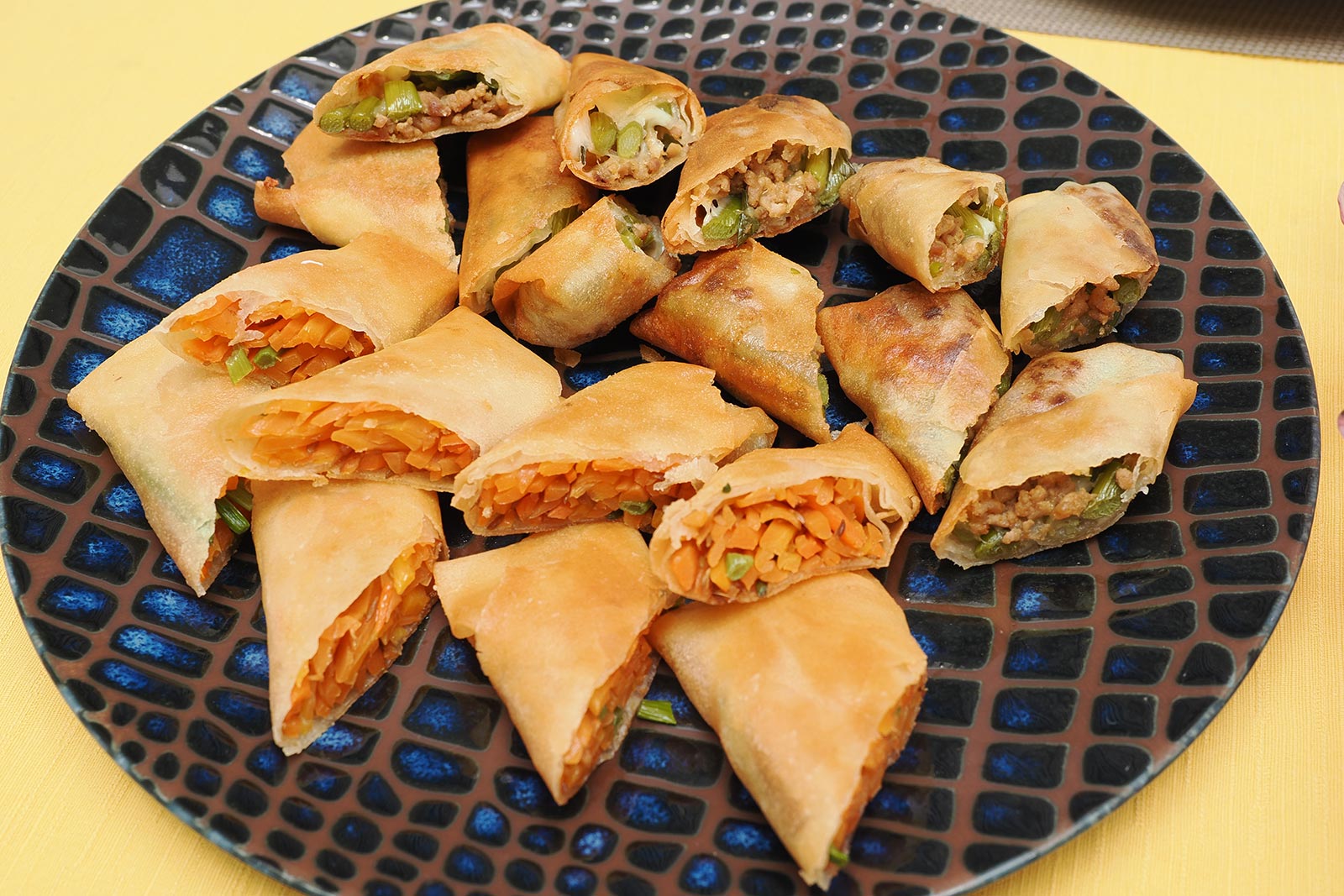 ↑こちらは「春巻」。2種類の「春巻の皮」使ったのですが、1つは大きめの「三角形」の皮で・・・