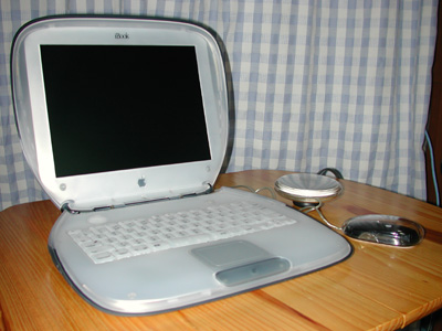 | 名前:Apple iBook Special Edition 定価:218,000円 私が買った値段:姉が110,000円で購入。(ヤマダでんき) 発売時期:2000年頃 買った日時:2001年1月頃 使い心地:姉が初めて買ったMacです。姉も俺の影響もあってMacユーザー。別に使い方をそれほど教えた覚えはないけど、結構普通の人より飲み込みが早いようで、結構使ってるみたい。ただ、画面が800x600ピクセルって言うのが狭い。ただ、3.0kgと相当重い。しかもでかい。バッテリーは5時間ぐらい持つところがすごい。でも、これって歴史に残るデザインだよね。 今後の予定:だいぶ使いこなしているようなので、画面が広くて性能が良くて軽いiBook(Dual USB)と交換しました。そんで、この子はオークションで売却。 |