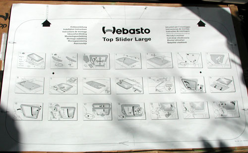 ルーフをカットする時に使う型紙。型紙には取り付けの説明図が描かれている。